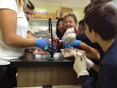 "Today,the kids of 4th of primary have learnt a lot about the heart and the circulatory system. We have used a pig's heart to learn about our own heart. We were really brave and we had good fun!